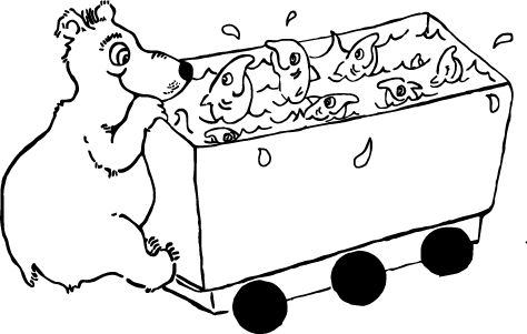 " Clickety, clack, down the track, Denali pulls the Salmon Wagon. A bear is fishing in the river. “Denali, come help me catch one!" He calls........"